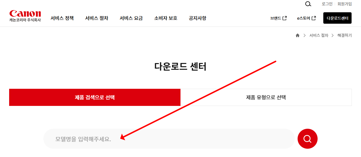 - 캐논 공식 사이트 접속